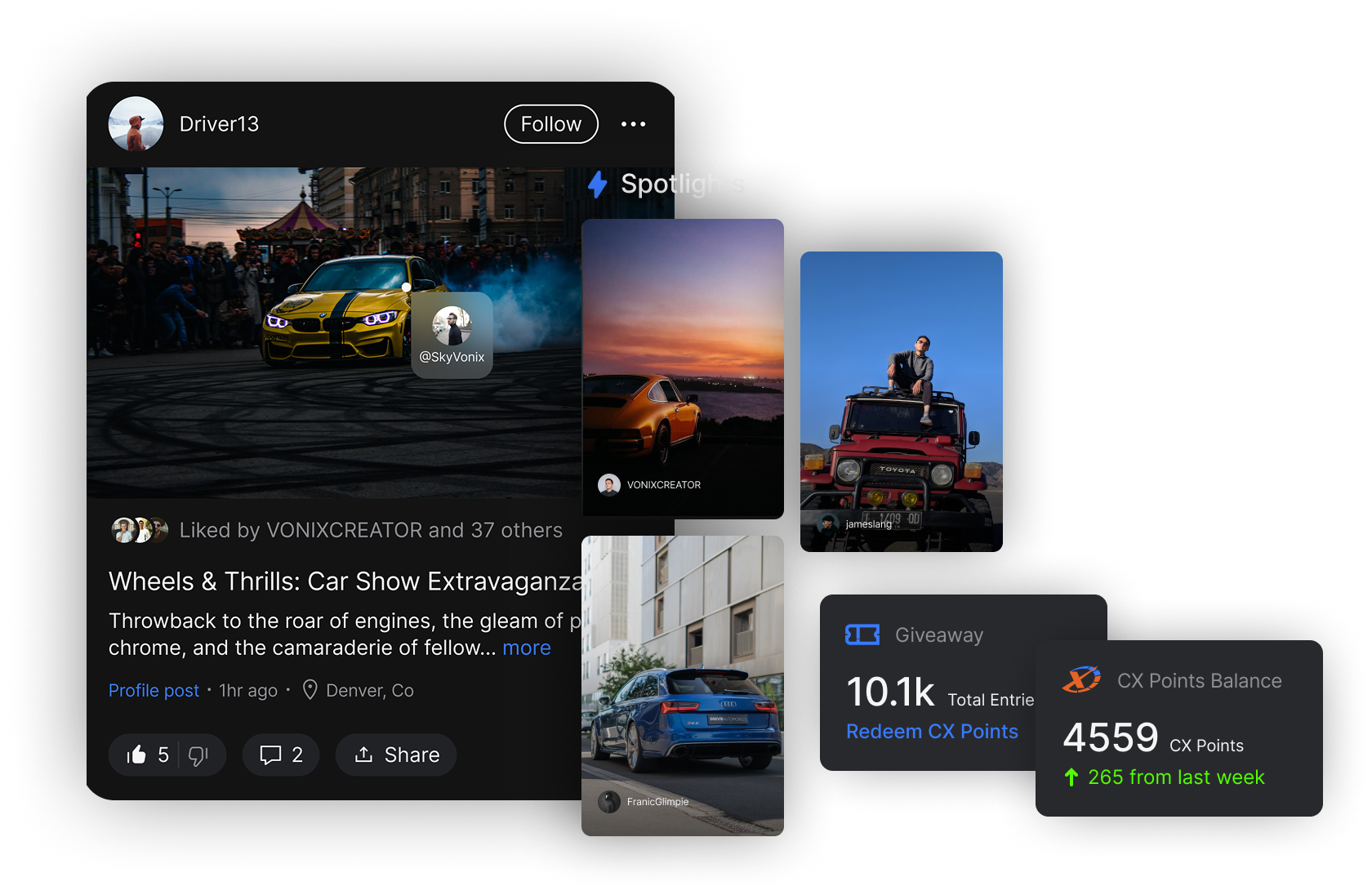 Business Profiles: Connect shops, tuners, and brands directly with enthusiasts.
