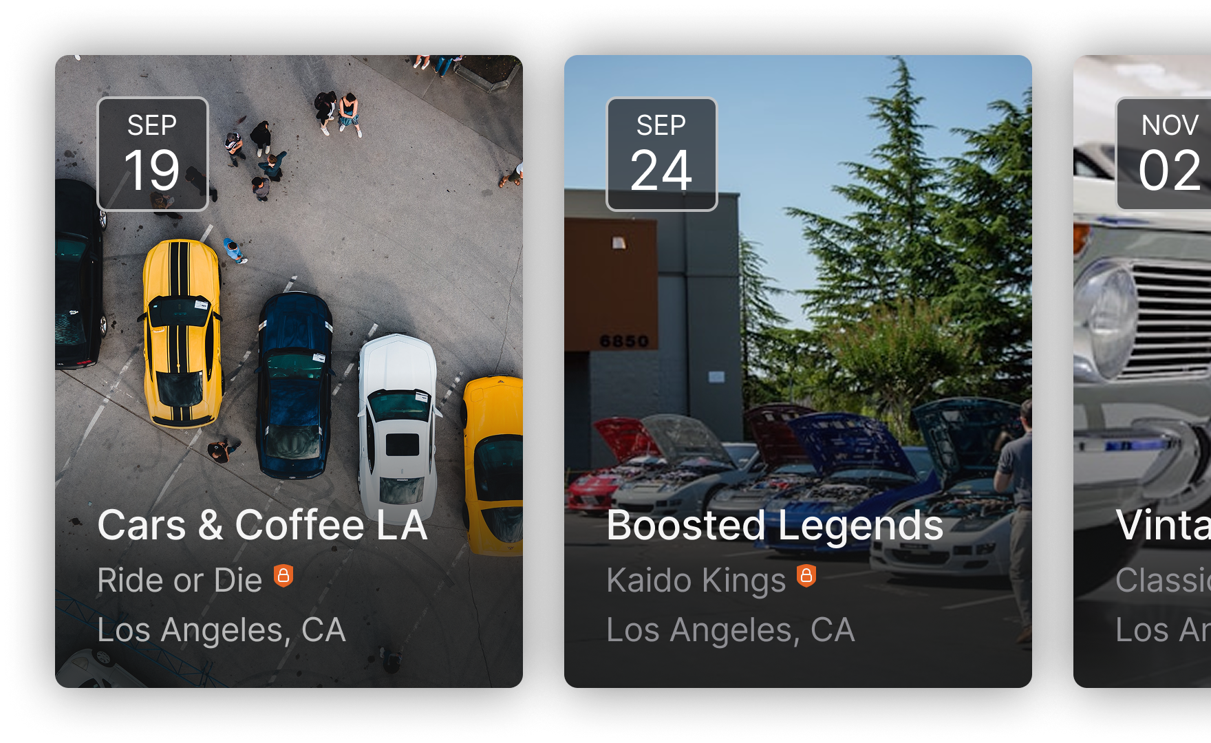 Events & Meetups: Discover local shows, rallies, and garage days.